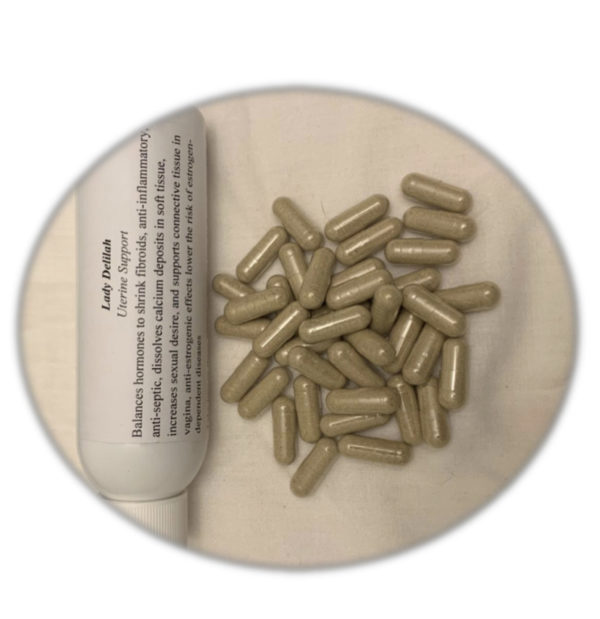 This Herb blend Balances hormones to shrink fibroids, anti-inflammatory, anti-septic, dissolves calcium deposits in soft tissue, increases sexual desire, and supports connective tissue in vagina, and anti-estrogenic effects lower the risk of estrogen- dependent diseases